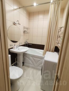 Санузел совмещенный, выполнен в светлых тонах с современной сантехникой.