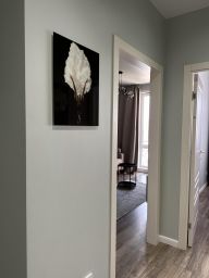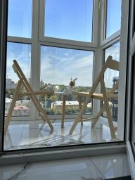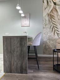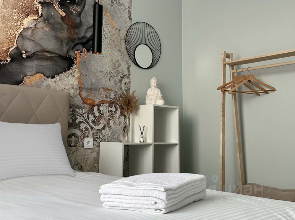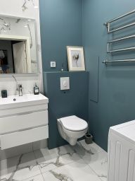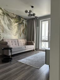 В апартаментах возможно размещение 4 гостей. Спальные места: двуспальная кровать, раскладной диван. Кухня оборудована необходимой посудой и техникой: индукционная варочная панель, микроволновка, чайник, холодильник, посудомоечная машина. К услугам гостей также wi-fi, телевизор, кондиционер, стиральная машина, фен, утюг, гладильная доска, сушилка, постельное белье, полотенца.