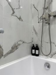 В апартаментах возможно размещение 4 гостей. Спальные места: двуспальная кровать, раскладной диван. Кухня оборудована необходимой посудой и техникой: индукционная варочная панель, микроволновка, чайник, холодильник, посудомоечная машина. К услугам гостей также wi-fi, телевизор, кондиционер, стиральная машина, фен, утюг, гладильная доска, сушилка, постельное белье, полотенца, тульская пресса, тапочки и гигиенические принадлежности.