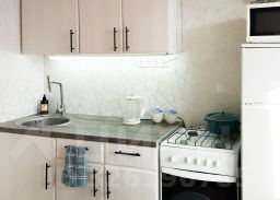 В апартаментах возможно размещение до 3 человек, спальные места - двуспальная кровать, диван-кровать. На кухне необходимая посуда и техника: плита, холодильник, микроволновая печь, чайник. К услугам гостей: телевизор, wi-fi, стиральная машина, фен, постельное белье, полотенца.
