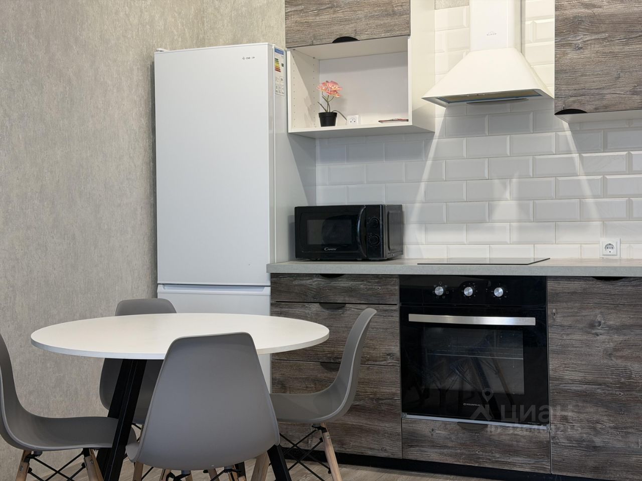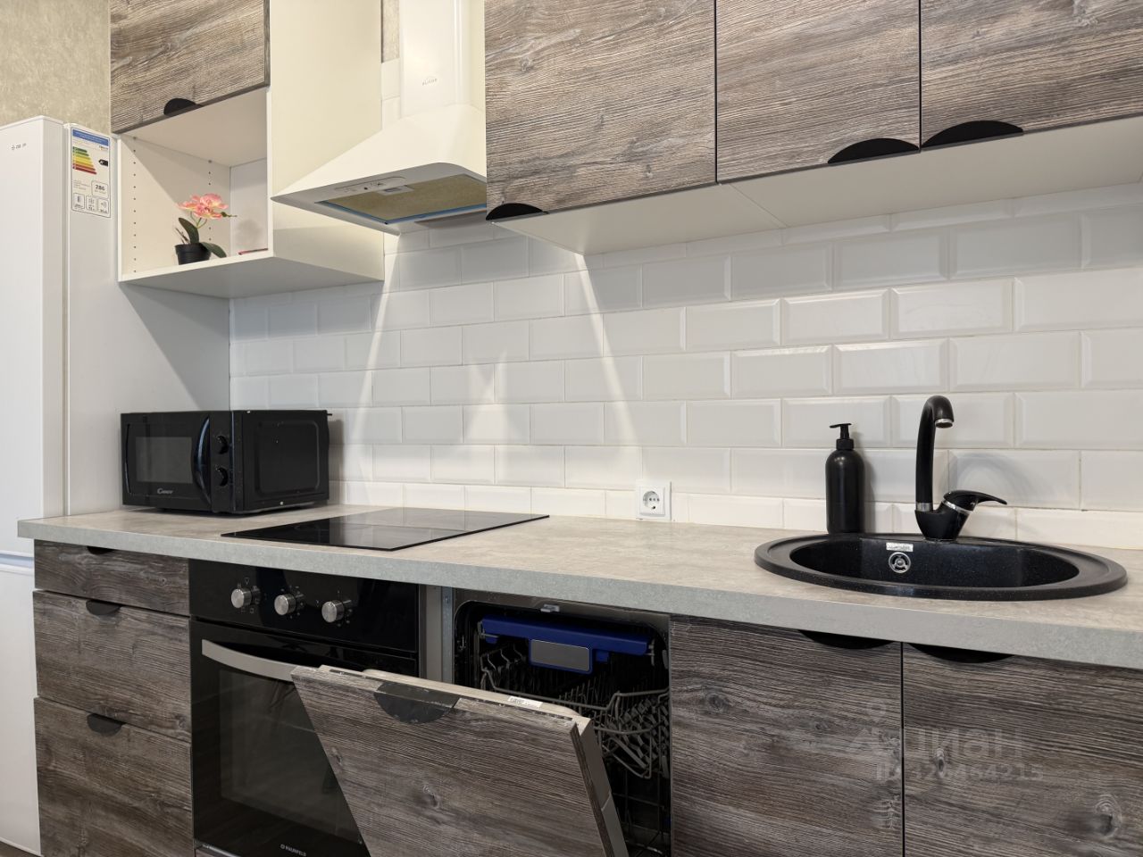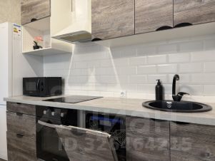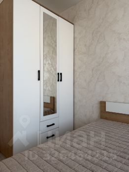 В квартире выполнен качественный ремонт в спокойных тонах. Большая кухня-гостиная с выходом на балкон укомплектована всей необходимой мебелью и техникой, установлен телевизор и посудомоечная машина. Отдельная спальня имеет удобную двуспальную кровать и прикроватную тумбу с небольшим, но вместительным шкафом для хранения личных вещей. В прихожей ещё один шкаф для верхней одежды.