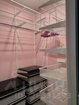 Большая и вместительная гардеробная, в которой реализована система хранения элф.