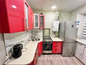 Вся необходимая мебель для проживания в квартире: кухонный гарнитур, стол, стулья, спальные места, диван, гардеробы, стиральная машина, холодильник.