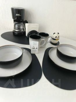 Оборудованная кухня: бытовая техника, посуда, чай, кофе.