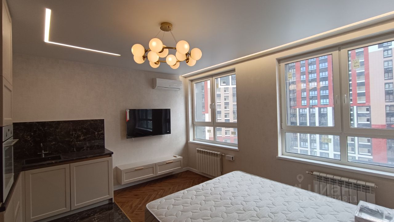 Впервые сдается новая, полностью укомплектованная для комфортной жизни студия на длительный срок. В студии сделан качественный дизайнерский ремонт. Новая кровать с ортопедическим матрасом, кондиционер, встроенный холодильник, духовой шкаф, сушилка, стиральная машина, Wi-Fi, телевизор.