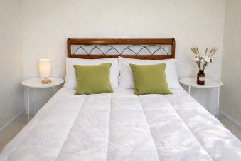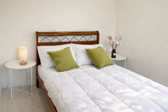 кровать 150*200, диван 140*190, хлопковое постельное бельё и 2 полотенца 70*140.