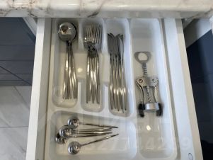 Электрический чайник, плита, микроволновка, полный набор посуды.