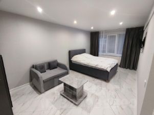 - Двуспальная кровать и небольшой раскладной диван( с комфортом могут разместится до 3 гостей).