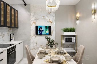 - Электрический чайник, плита, микроволновка, полный набор посуды.