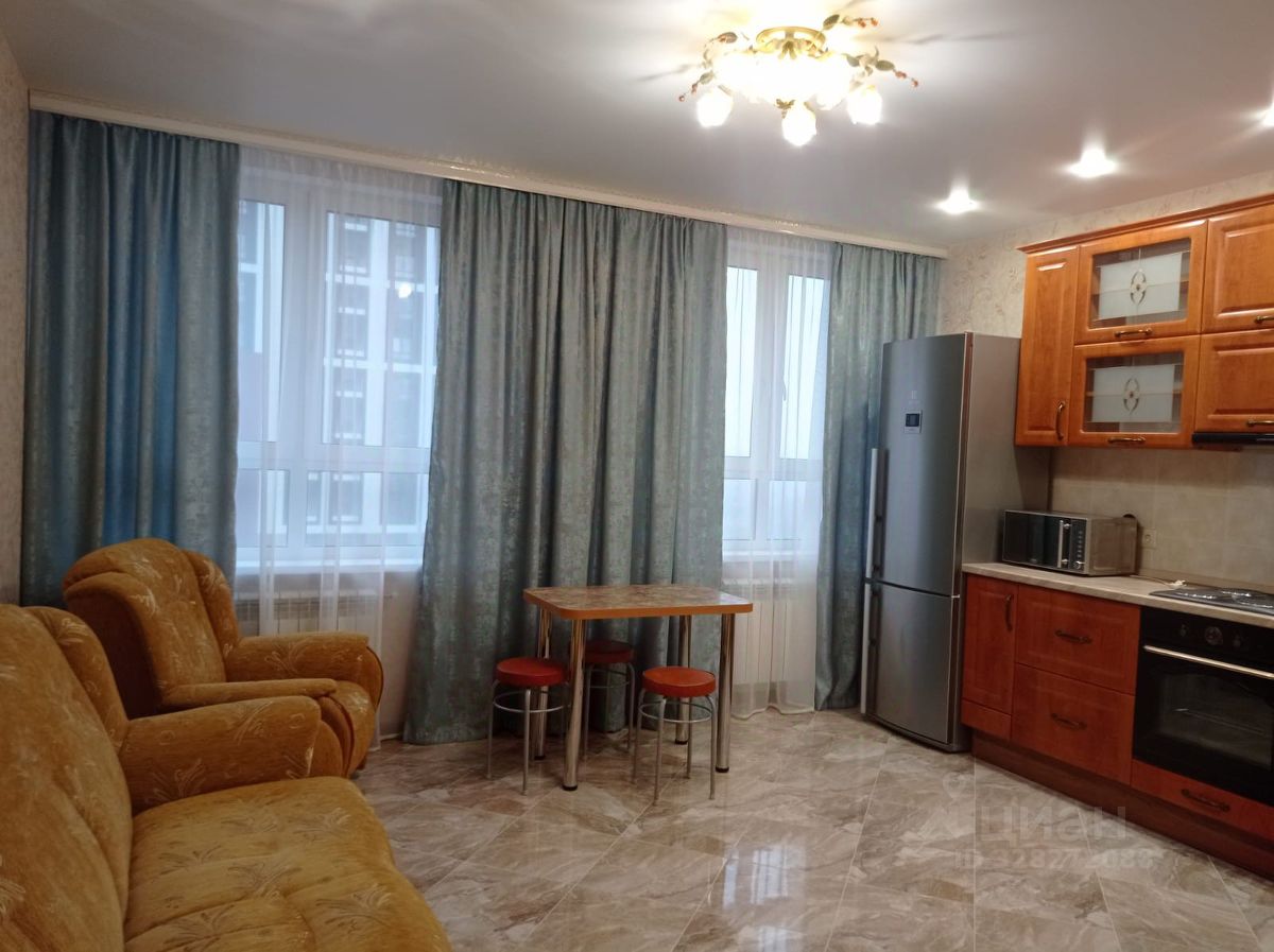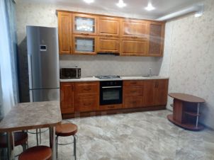 В квартире выполнен современный евроремонт. Обстановка включает всю необходимую мебель как на кухне, так и в комнате. Для вашего комфорта в наличии холодильник и стиральная машина, микроволновка. Санузел совмещен и оборудован ванной. Окна выходят во двор, поэтому в квартире всегда тихо и уютно.