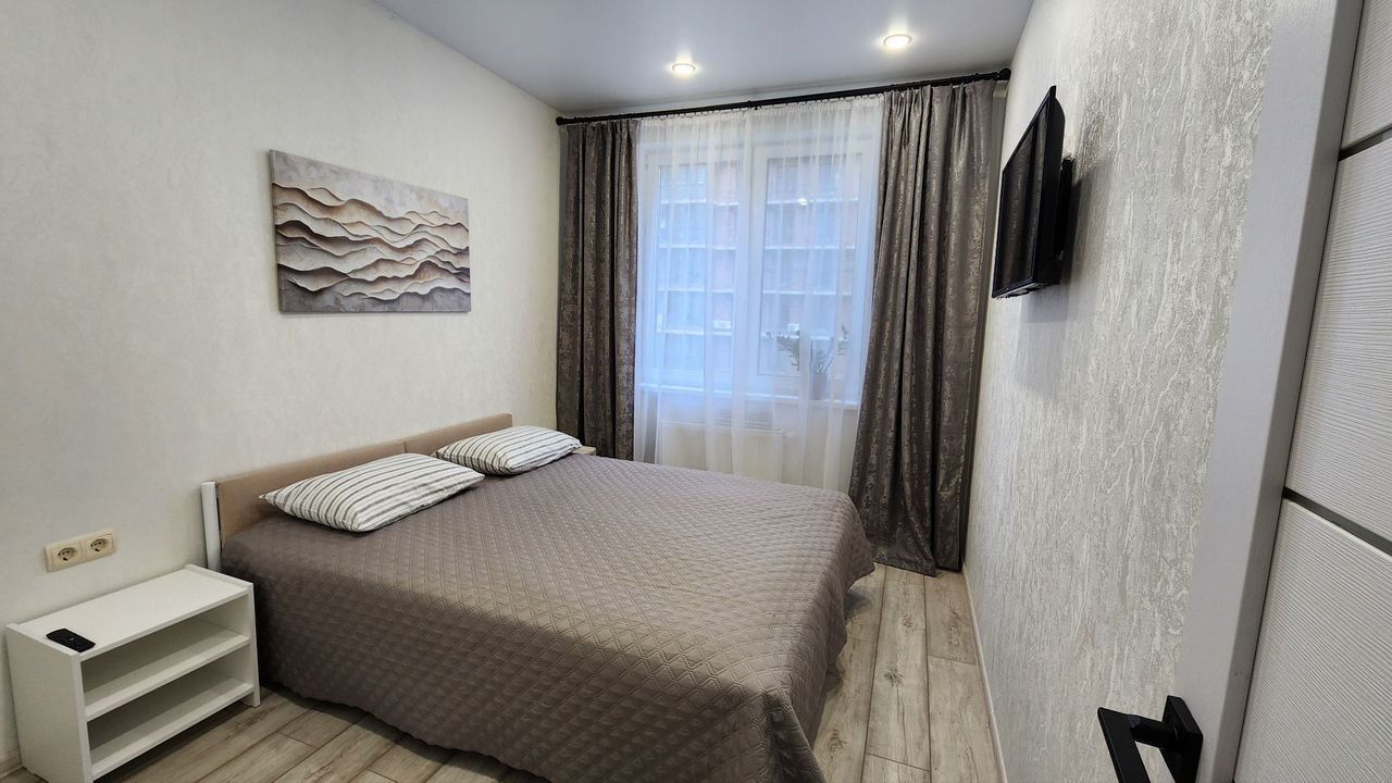 Гостиная с двуспальным диваном-кроватью и отдельная спальня с удобной двуспальной кроватью и ортопедическим матрасом, отлично подойдут для размещения 4 гостей.