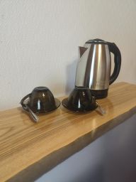 общая кухня с посудой и бытовой техникой для приготовления простых блюд;