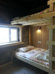 Уютный номер с двухярусной кроватью поможет вам отдохнуть после активного отдыха. Санузел: душ, туалет, умывальник. Есть детская комната, спортзал.