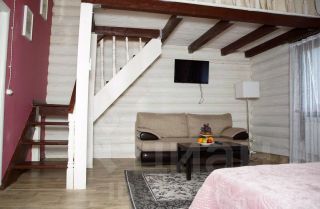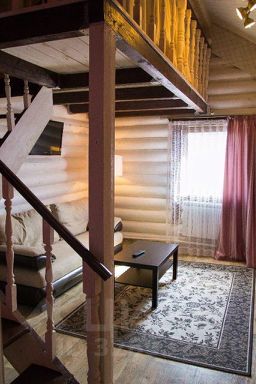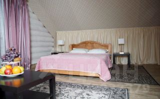 Двухэтажный номер площадью 40 квадратных метра, оформлен в русском стиле с одной двуспальной кроватью и диваном. Имеется возможность установить в номер дополнительное место.