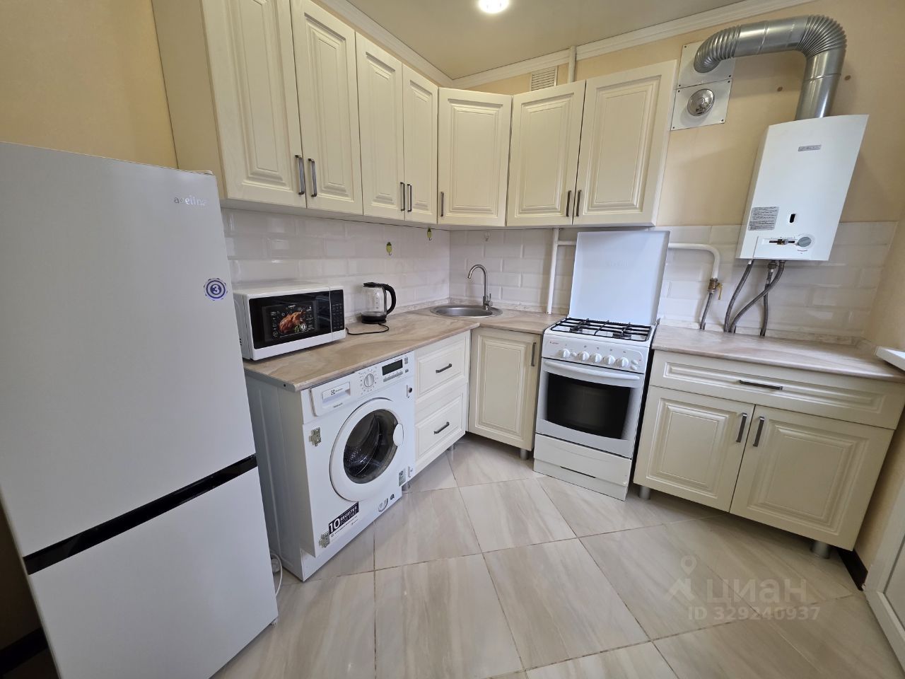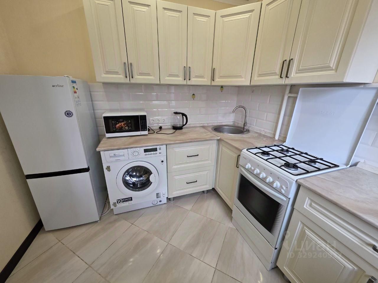 Квартира после евроремонта, полностью готова к проживанию. Здесь есть вся необходимая мебель, холодильник, телевизор и стиральная машина.