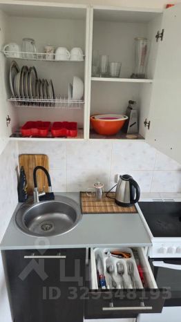- Кухонный гарнитур с электрической плитой, микроволновая печь, холодильник, чайник.