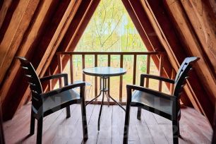 Двухэтажный двуместный бунгало с террасой, балконом, электрическим камином, стиральной машиной, качелями и гамаком: