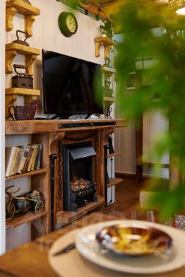 1 этаж - кухня, ванная комната, диван, телевизор, стол и стулья;