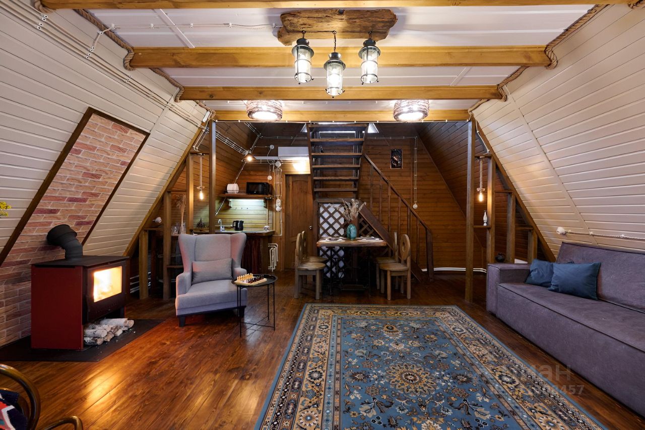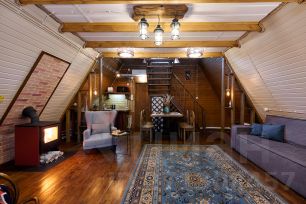 1 этаж - кухня, ванная комната, диван, стол и стулья;