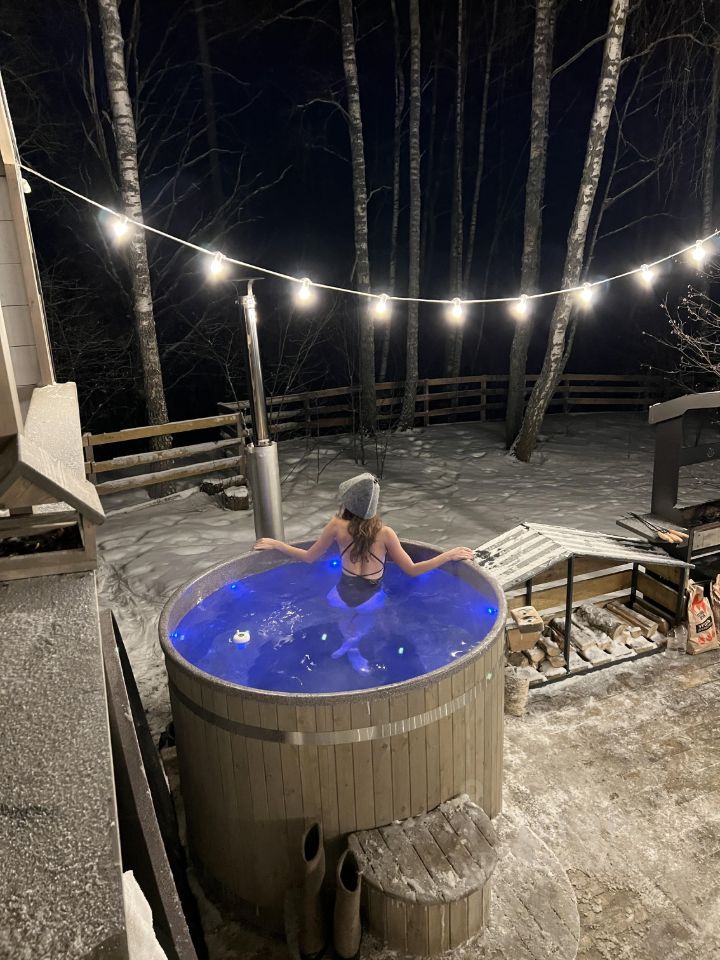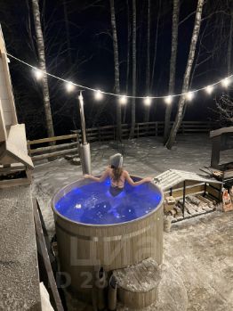 У дома установлена горячая купель для комфортного размещения пятерых человек.