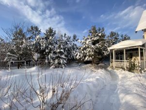 Двухэтажный светлый дом (120 кв. м) полностью оборудован для круглогодичного проживания. Отопление - газовый котёл, тёплый пол, радиаторы. Магистральный газ. Водопровод из собственного колодца с питьевой водой, с хорошим напором. В доме также есть кирпичная печь, обогревающая оба этажа.