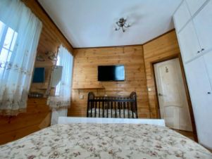 Имеются мебель, посуда, бытовая техника и Смарт-ТВ. По запросу - детская кроватка и стульчик для кормления ребёнка. Спальные места: две 2-спальные кровати на втором этаже дома, 3 односпальных.