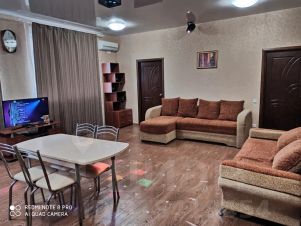 Уютный, просторный, комфортабельный дом для отдыха и мероприятий, с художественным интерьером, со всеми удобствами. На территории: качели, крытая беседка с мангалом и казаном. Шампура. Решетка. Вся необходимая бытовая техника: Wi-Fi, музыкальный центр, караоке, микроволновая печь, электрический чайник, телевизор, кабельное ТВ, холодильник, фены, также есть вся необходимая посуда. На этаже большой столовый зал с телевизором, музыкальным центром с Bluetooth и флешкой и местом для танцев, светомузыка Disco-Hоuse, просторная кухня со столовыми принадлежностями. Евроремонт, 3 отдельных комнаты, 3 стола, 20 стульев.