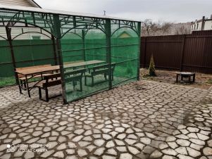 Банкетных мест в доме 20, в беседке 15, спальных мест в доме 10. Заезд в 14 часов. Выезд до 12 часов. Парковка на 6 авто, полностью мебелизирована, все коммуникации. Дом находится рядом с торговым центром "Гиперспар", остановка "Машколедж".