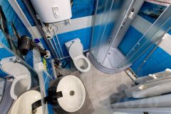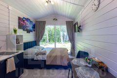 в стиле А-фрейм на четверых гостей, двухспальная кровать, раскладной диван,подойдёт для семейного отдыха или большего простора;