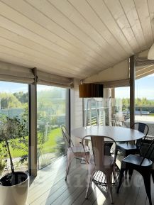 Просторная, уютная терраса с мягким уголком для отдыха и уличной обеденной зоной.