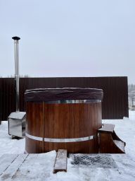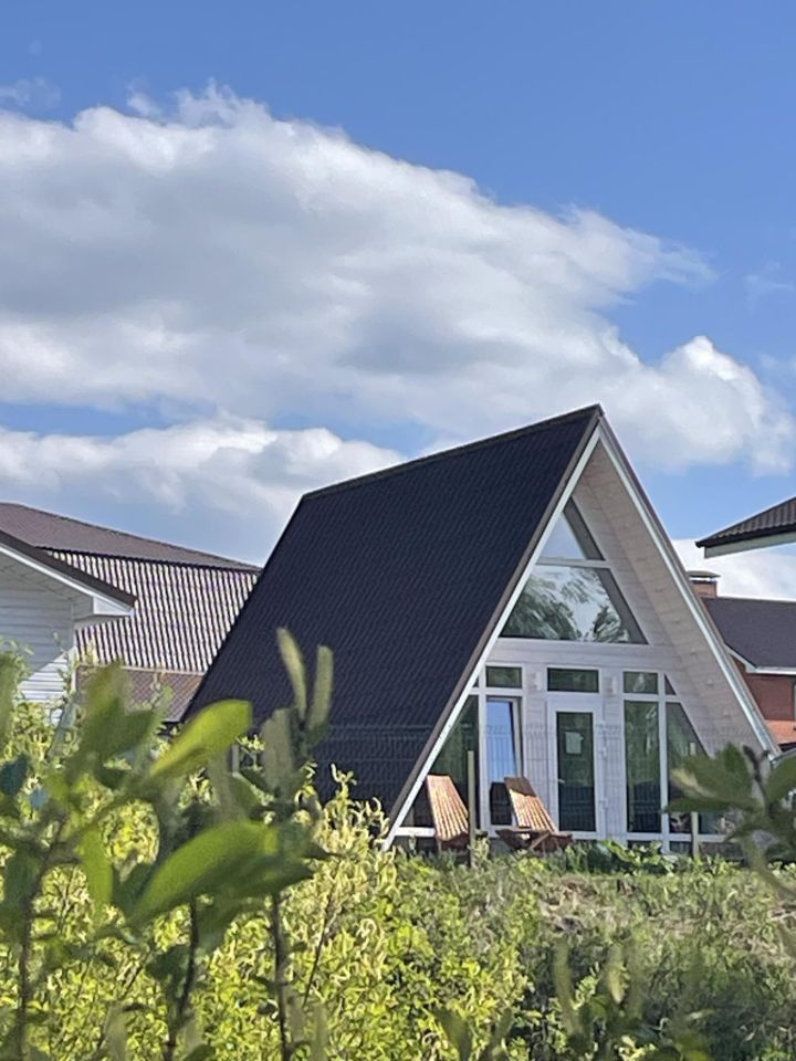 Домик A-Frame с бочкой Фурако расположен в 15 минут до цента города Тулы, с видом на озеро.