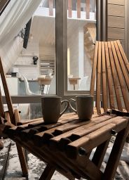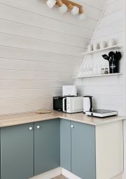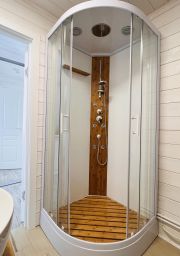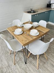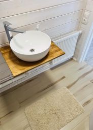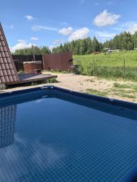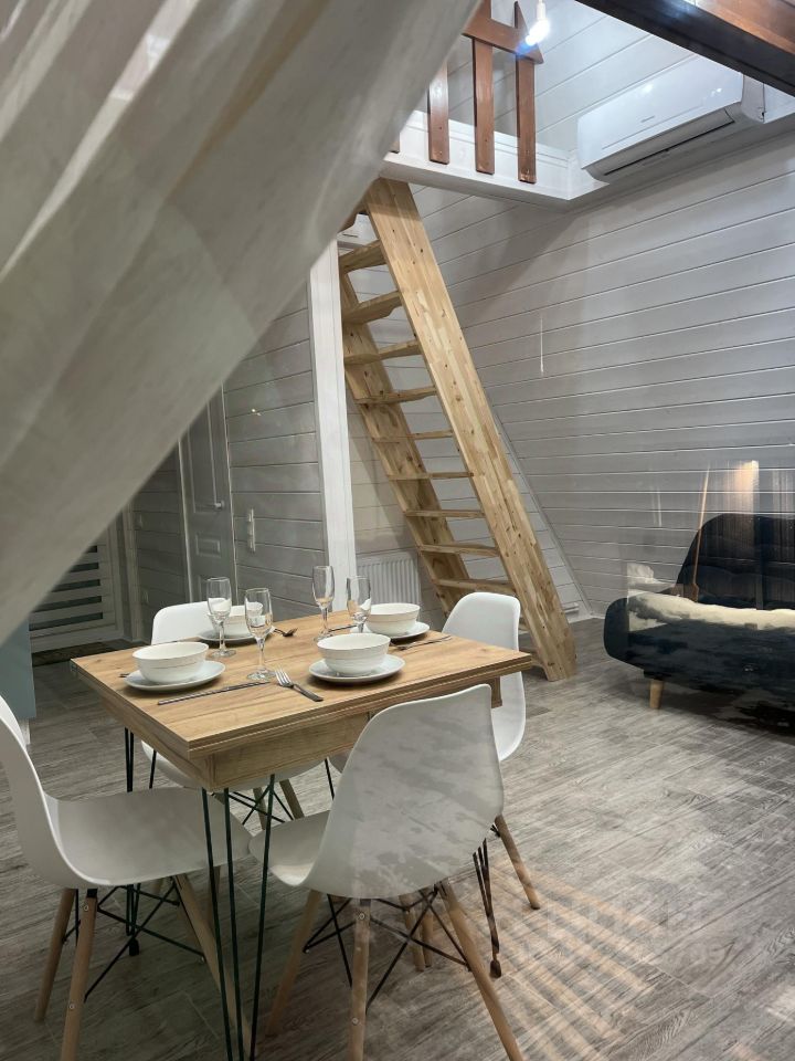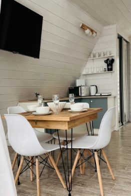 К услугам гостей представлен домик, где предусмотрено всё необходимое для отдыха - холодильник, плита, микроволновка, чайник, телевизор со smartTV, туалет, душевая кабина, Wi-Fi, посуда, столовые приборы, кухонные принадлежности, постельное бельё, полотенце и тд.