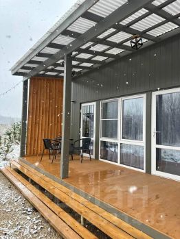 Просторный домик с террасой для семьи или дружной компании. Большой стол для ужинов, настольные игры, мягкий диван, тёплые пледы, мерцание огоньков, горячий чан под звездами.