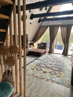 Уютная атмосфера дома со всем необходимым обеспечением. Шале может принять 5 гостей. Две двуспальные кровати с ортопедическими матрацами и уютный диван. 6 гость по согласованию. Здесь есть все, чтобы приготовить полноценный завтрак. Ароматный кофе из кофе машины, травяной чай, яйца, сливочное масло, хлеб, джем, растительное масло, крупы для каш, молоко. Для гостей в доме есть полотенца, постельное белье, тапочки, халаты, средства гигиены.