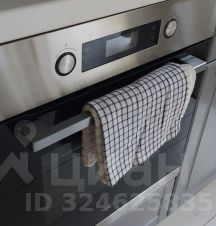 Гостиная-кухня с панорамными окнами: холодильник, кофемашина, посудомоечная машина, духовой шкаф, плита, микроволновка.