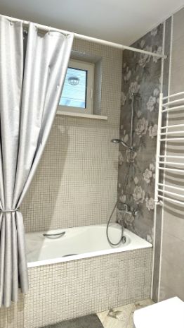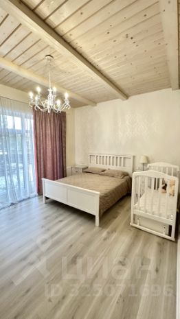 2 спальни с двуспальными кроватями (в одной из спален есть гардеробная и установлена детская кроватка), 1 спальня с двумя односпальными кроватями, огромная кухня-гостиная с большим раскладным диваном (где может уместиться 2 взрослых и 1 ребенок).