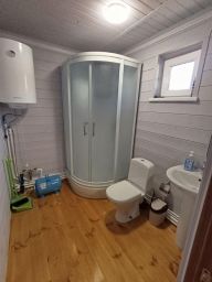 Домик на восемь человек площадью 72 квадратных метра. Пространство прекрасно организовано и оснащено всем необходимым для приятного отдыха и удобства гостей. При входе расположен шкаф, куда легко поместятся верхняя одежда и личные вещи. Две спальных комнаты с двуспальными кроватями обеспечивают максимум комфорта. Одна спальная с двумя односпальными кроватями прекрасно подходит для размещения детей. Двуспальный диван в гостиной также предусматривает размещение двух гостей. Кухонная зона: предусмотрен полный комплект посуды, холодильник, электрический чайник и микроволновая печь. Индукционная варочная панель позволит приготовить любимые блюда быстро и удобно. Санузел: гигиенические средства и фен обеспечат свежесть и удобство пребывания. Развлечения: телевизор с основными телеканалами и современная Bluetooth-колонка с микрофоном позволят создать атмосферу домашнего тепла и уюта. Рядом с домом расположена оборудованная мангальная зона с удобной решёткой и набором шампуров. Идеально подойдёт для вечернего барбекю. Лавочка и столик подарят приятные моменты отдыха на открытом воздухе. Любители активного отдыха оценят наличие кокона-качалки.