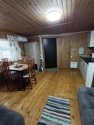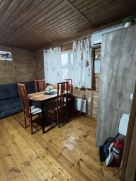Домик на четверых площадью 28 квадратных метров. Пространство прекрасно организовано и оснащено всем необходимым для приятного отдыха и удобства гостей. При входе расположен шкаф, куда легко поместятся верхняя одежда и ваши личные вещи. Два двуспальных дивана: обеспечивают вам максимум комфорта благодаря своей ортопедической конструкции, сравнимой с кроватью. Кухня: предусмотрен полный комплект посуды, холодильник, электрический чайник и микроволновая печь. Индукционная варочная панель позволит приготовить любимые блюда быстро и удобно. Санузел: гигиенические средства и фен обеспечат свежесть и удобство пребывания. Развлечения: телевизор с основными телеканалами и маленькая Bluetooth-колонка позволят создать атмосферу домашнего тепла и уюта. Рядом с домом расположена оборудованная мангальная зона с удобной решёткой и набором шампуров. Лавочка и столик подарят приятные моменты отдыха на открытом воздухе. Любители активного отдыха оценят наличие кокона-качалки.