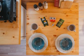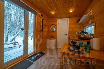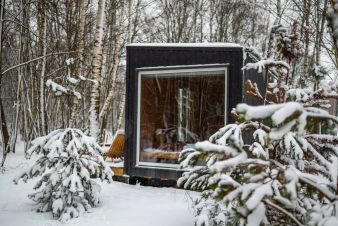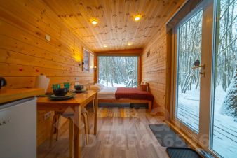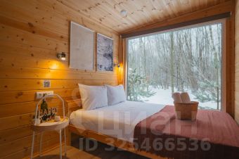 В доме с большим панорамным окном есть двуспальная кровать, кухня, холодильник и санузел с душем, есть терраса с мебелью и все принадлежности для барбекю.