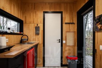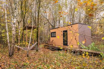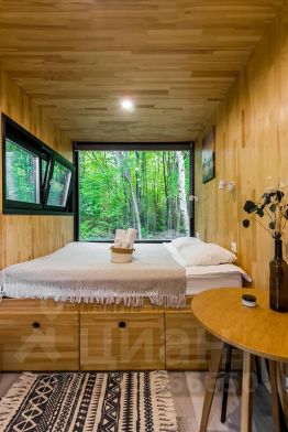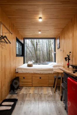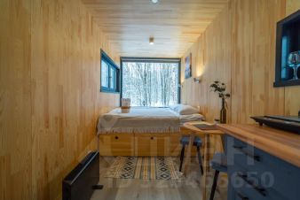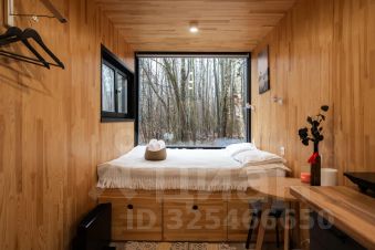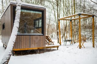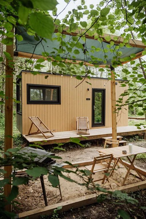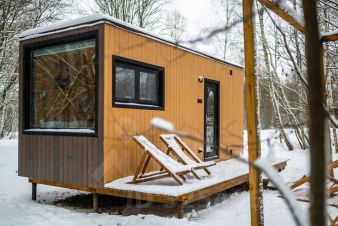 В доме с большим панорамным окном есть двуспальная кровать, кухня, холодильник и санузел с душем, есть терраса с мебелью и все принадлежности для барбекю.