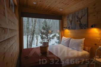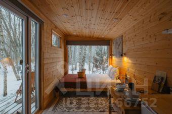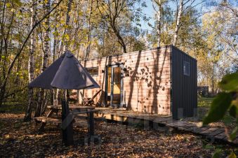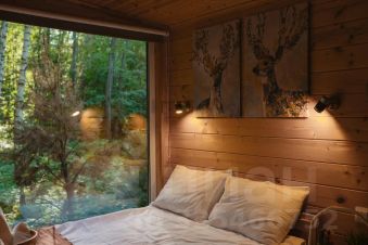 В доме с большим панорамным окном есть двуспальная кровать, кухня, холодильник и санузел с душем, есть терраса с мебелью и все принадлежности для барбекю.