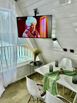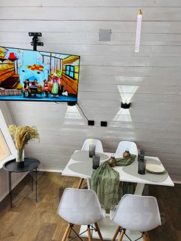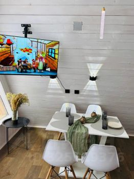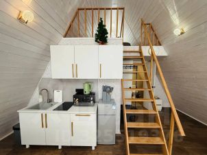- Внутри есть всё необходимое для комфортного проживания: чистая постель, полотенца, Wi-Fi, фен, утюг, чайник, чай, кофе и вода.