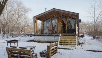 Дом с верандой и кухней. Это первый из легендарных дубль-домов, который переехал к нам на берег Оки с реки Жабня, где с 2015г стоял на воде в 4 км от г. Калязин.