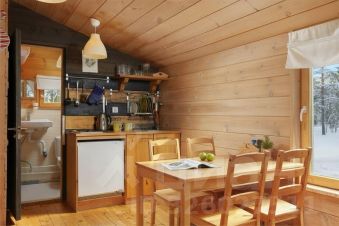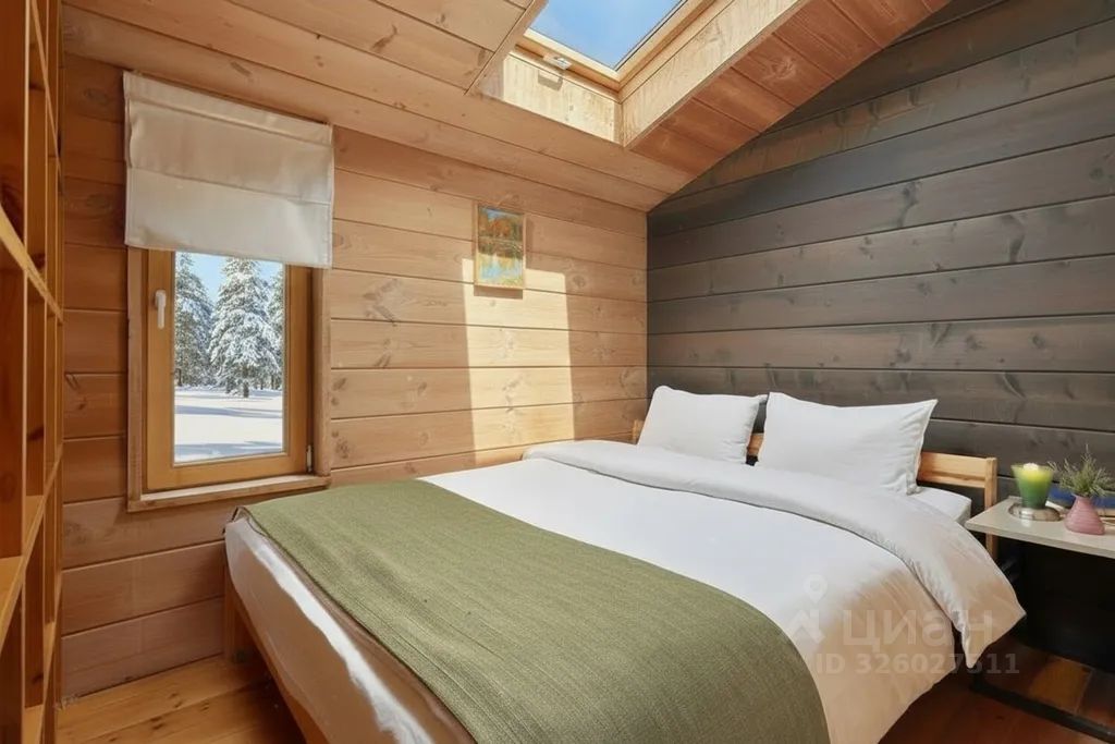 Через мансардное окно над кроватью можно любоваться звездным небом или облаками. Панорамные окна увеличивают пространство и лишь формально отделяют гостей от природы, при этом в доме уютно и тепло в любую погоду.