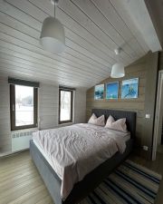 В доме три изолированные спальни с двуспальными кроватями, просторная кухня гостиная с большим раскладывающимся диваном. Панорамные окна с потрясающими видами на лес, природный естественный ландшафт, и большая комфортная терраса. Отдых для глаз 360 градусов.