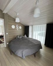 Дом расположен прямо в лесу, в тихой части поселка и дает вам возможность уединения и перезагрузки. Дом подходит для размещения семьи или компании 4-6-8 человек, а также идеален для пар.