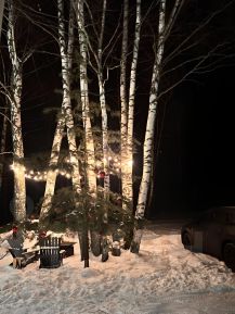 Лесной участок 20 соток, полностью закрыт по периметру. На участке прекрасный естественный лесной газон, сосны, елки, многолетние лиственные деревья. Предусмотрены разные сценарии освещения ландшафта и дома: красивая приветственная подсветка парковки и участка, фасада дома, нарядные гирлянды на фасаде и в мангальной зоне, на елках.