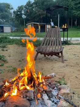 Возле домика есть терраса с уличной мебелью и персональный мангал со всеми мангальными принадлежностями.