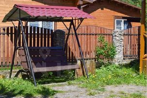 двухэтажный с отдельным входом и закрытой просторной уличной беседкой для отдыха. Рассчитан на проживание до 18-ти человек. На первом этаже большая гостиная с обеденным столом и стульями, две кухни с необходимым набором посуды для самостоятельного приготовления пищи, Холодильник, СВЧ, электрический чайник и электроплитка, двуспальный диван, большой ТВ. В коттедже на первом этаже русская баня на дровах (топка по желанию 6000 за сеанс на 2 часа). Два санузла с душевыми и обливочным ведром. На втором этаже четыре раздельные спальни, в одной две полуторные кровати (можно сдвинуть), прикроватные тумбочки, в другой двухспальная кровать и полуторная. Так же, на втором этаже два двуспальных дивана. На улице, огромная крытая беседка с освещением и индивидуальный мангал.