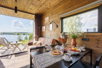 "Луговая сказка" — дом, где оживает волшебство детства и звонкий смех у костра. Рекомендация: в доме у камина сидеть в обнимку с любимыми и закружиться в счастливых воспоминаниях, а утро встретить с запахом полевых цветов и зовом реки Воронка.